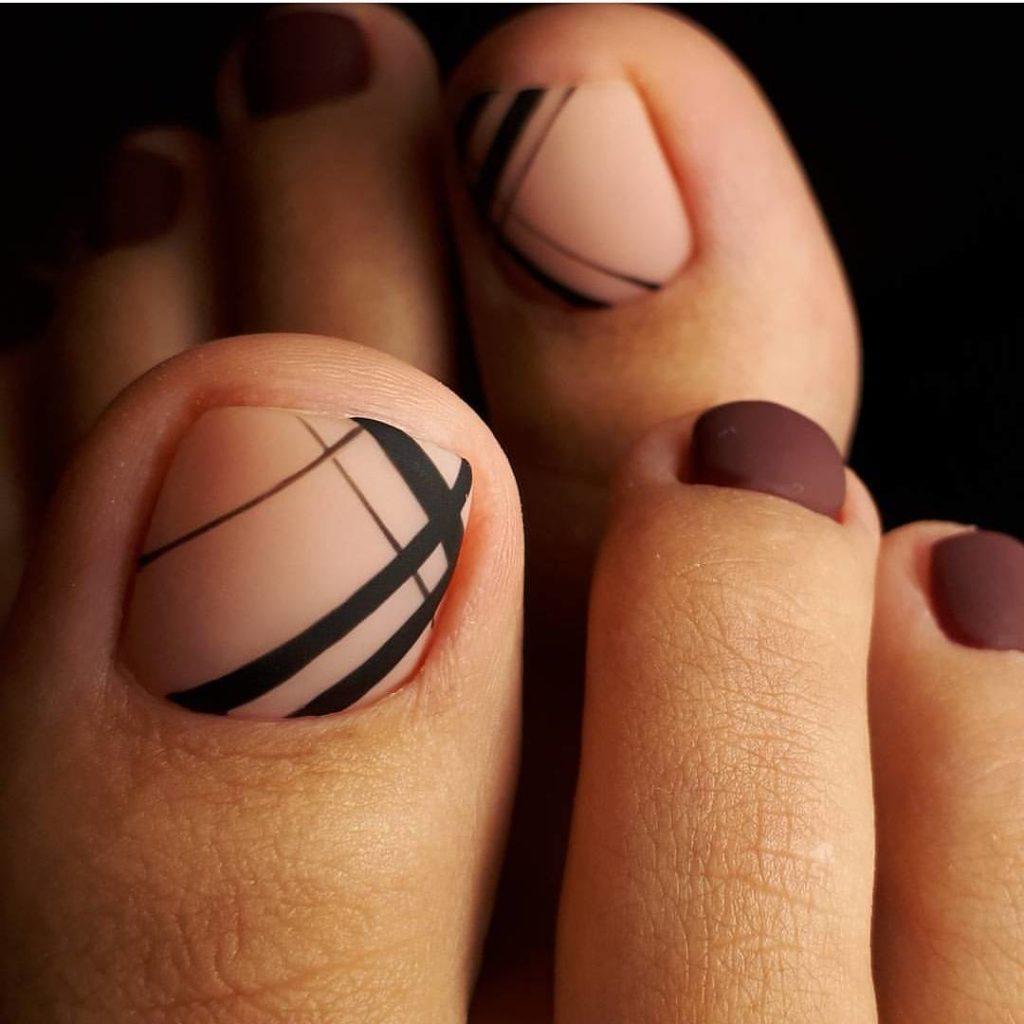 Абстрактный дизайн нюдового педикюра – это многочисленные и уникальные завитки, узоры, орнаменты, полоски, штрихи, мазки, брызги, пятна, паутинки и многое другое. Именно абстрактный педикюр в нюдовых оттенках позволяет реализовать самые необычные, креативные и авторские идеи нейл-дизайна. Очень актуален в 2025
